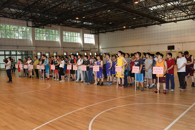 扈庆学宣布2016年教职工篮球赛开始。本次篮球赛共有14支队伍参赛,比赛第一阶段分A、B二组采用单循环制,第二阶段采用交叉淘汰制。各代表队的运动员精神饱满,蓄势待发,准备赢得第一场开门红,选手们在规则的限制内将球向任何方向传、投、拍、运,动作近乎于专业运动员。参赛队员们拼尽了全力,将自己的球技发挥的淋漓尽致,紧张兴奋的心情感染着每一位在场的观众。