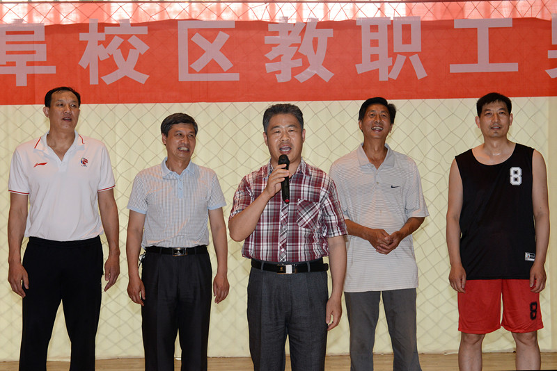 6月12日,我校教职工篮球赛赛在体育科学学院球类馆开幕。本次教职工篮球赛由我校工会主办,教职工篮球协会承办。副校长扈庆学、工会主席王万民及篮球协会会长盛绍增等出席开幕式。