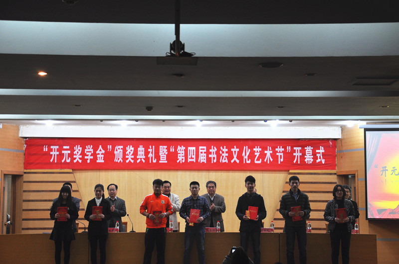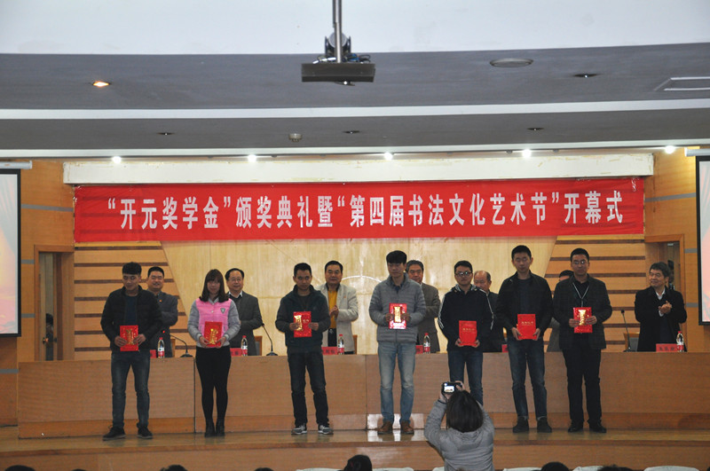 11月11日下午,书法学院“开元奖学金”颁奖仪式暨“第四届书法文化艺术节”启动仪式举行。副校长马东骅,“开元奖学金”管理委员会主任李开元及书法学院相关领导出席仪式。