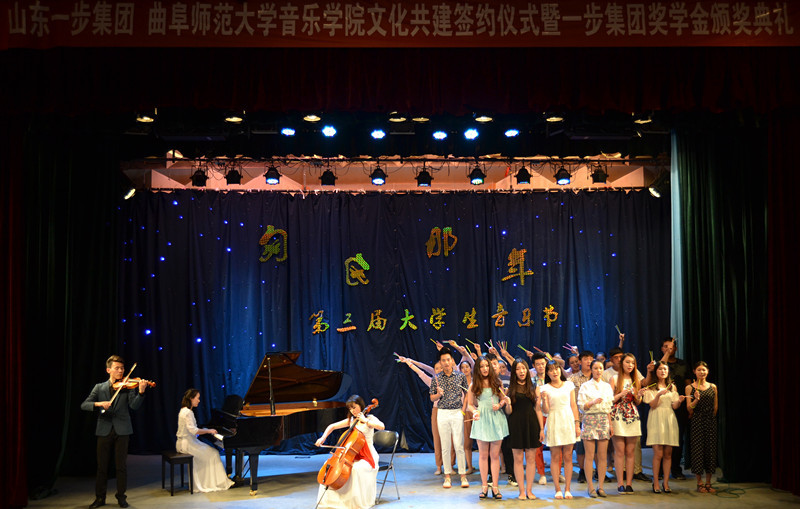 6月12日晚,山东一步集团、D体育在线登录官网音乐学院文化共建签约仪式暨一步集团奖学金颁奖典礼举行,同时第三届大学生音乐节开幕。一步集团商务总经理秦小予,我校日照校区管理办公室、校区学生工作办公室、音乐学院负责人等出席仪式。典礼由党总支书记周彩霞主持。