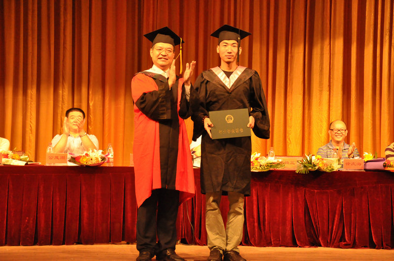 典礼上,宣读了学位授予名单,单承彬为毕业生一一拨穗正冠。