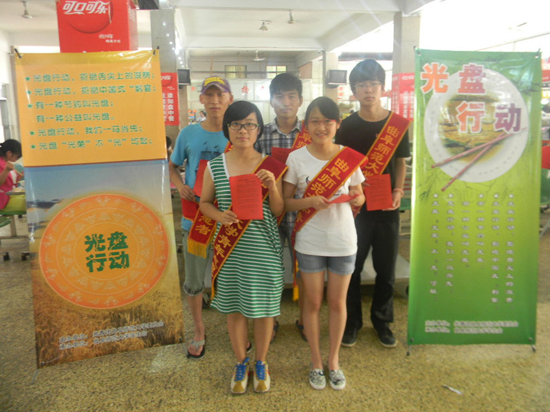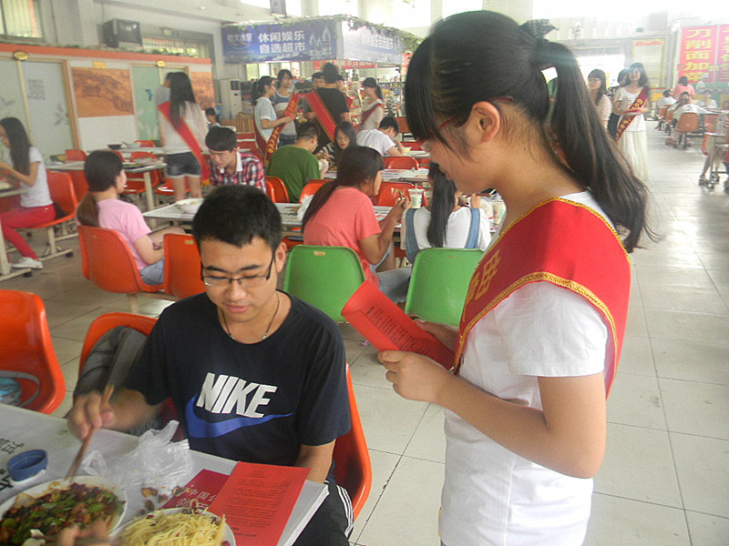 本次光盘行动包括“光盘行动之劝导活动”、“光盘行动之签字活动”“光盘展板展示”等环节。在“光盘行动之劝导活动”中,志愿者们分赴学生第二餐厅、第三餐厅、教职工餐厅等就餐集中场所,通过发放宣传单讲解相关知识进行劝导。志愿者们热情主动地向就餐人员介绍光盘二字的由来及其重大意义,并将光盘活动的海报漫画向就餐人员展示,就餐人员认真聆听仔细观看并对志愿者致以谢意。签字活动中,过往行人在签字横幅的吸引和工作人员的引导下,积极地留下姓名表示支持光盘行动的决心。“光盘行动”收到良好的效果,得到广大学子的积极响应。
