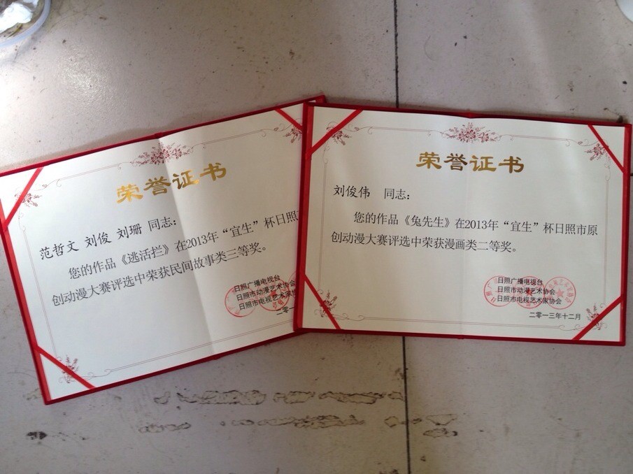 12月27日,2013年“宜生”杯日照市原创动漫大赛颁奖大会圆满落下帷幕。我校美术学院刘俊伟的原创漫画类作品《兔先生》在大赛中荣获二等奖,范哲文的原创动画类作品《逃活拦》、赵悦的原创漫画类作品《女孩》荣获三等奖。 本次原创动漫大赛以日照民间故事为主题,作品《兔先生》、《逃活拦》、《女孩》发挥动漫艺术特色,作品立足原创、思维活跃、内容鲜明,以独特视角和艺术表现手法生动形象地传播着日照小城的风土人情,是充满创造力的优秀动画作品。 据悉,今年是日照市第四届原创动漫大赛,经过近一年的筹备组织,面向全国征集作品,经过层层筛选,最终有44个动画,70个漫画作品入选。