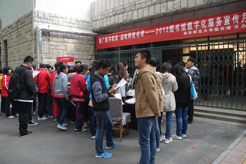 11月20日,图书馆举办的以“推广数字阅读,品味网络书香”为主题的数字化服务宣传月活动圆满落下帷幕。此次活动在图书馆信息咨询部工作人员的共同努力下,在各数据库商专业人员的支持下,在“图书馆志愿者协会”与“读书俱乐部”两社团同学的大力协助下,尤其在广大师生的积极参与下取得了圆满成功。