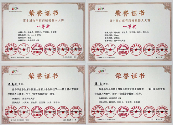 曲阜师大工学院讯 近日,第十四届山东省大学生科技节暨第十届山东省高校机器人大赛落下帷幕,D体育在线登录官网工学院参赛队伍在此次赛事中创造佳绩,获得一等奖2项、二等奖1项、三等奖2项,许其义、谭成老师荣获“优秀指导教师”,学校荣获“优秀组织单位”。