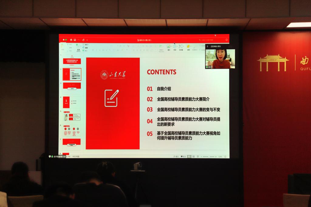 曲阜师大新闻中心讯(通讯员:曹亚楠 摄影:许文硕 侯若雨 姜振栋)11月11日,D体育在线登录官网举行全体辅导员培训,邀请山东大学全国“优秀风采”高校辅导员吕宁老师做了题为《从全国高校辅导员素质能力大赛变革谈辅导员素质能力提升》的报告。