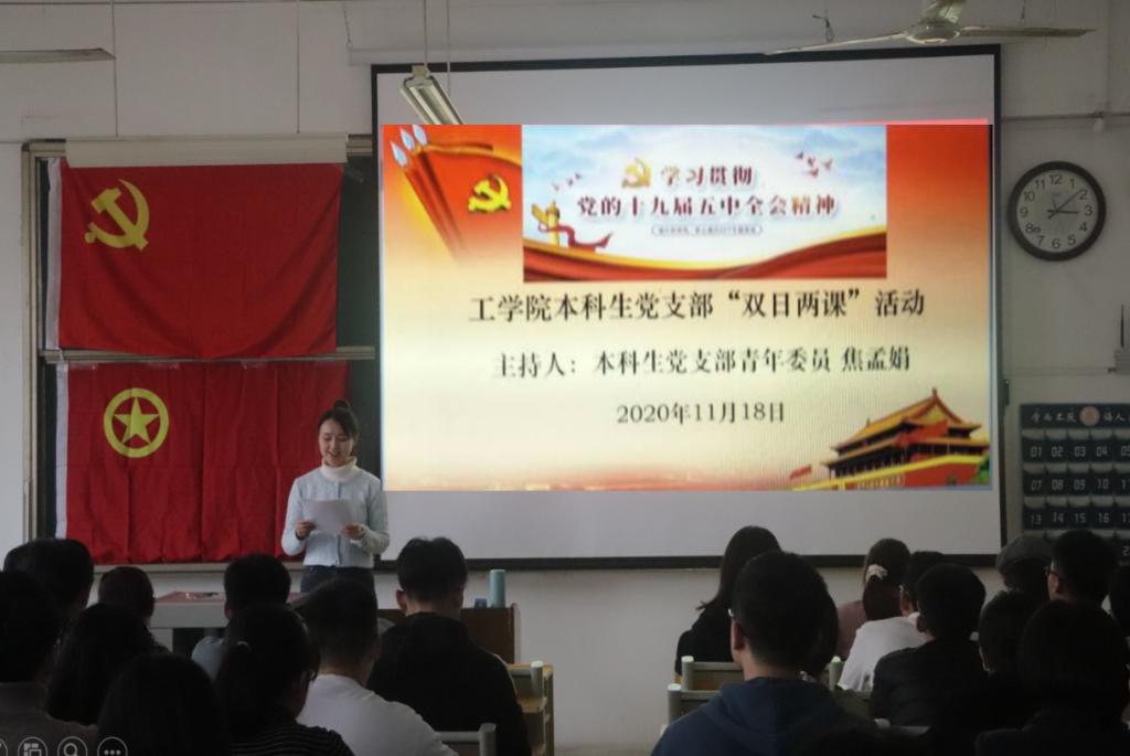 “双日两课”是工学院本科生党支部“支部活动+”的重要载体,是支部“党建带团建”职责重要体现。支部将进一步把十九届五中全会精神和学习工作实际结合起来,发挥支部的战斗堡垒和党员的先锋模范作用,加强党团交流,吸引更多优秀青年积极向党组织靠拢,共同为第一个百年目标的实现,为开启现代化建设的新征程不断奋进。