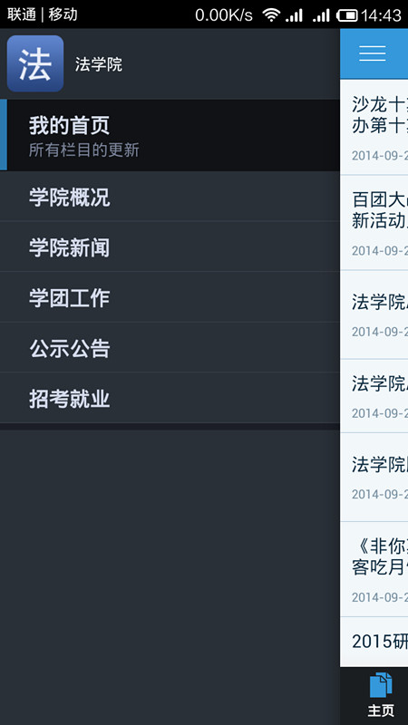 近期,法学院自主开发了学院官方手机APP软件并进行上线公测。法学院开发官方手机APP软件的目的在于使学生通过手机客户端便可及时了解学院工作动态,促进学院与学生的沟通与联系,实现信息的交流和共享。作为新媒体,法学院官方APP拓展了学院宣传的渠道,面向法学院全体师生,集查询、阅读、交流、分享等功能于一身,为法学院广大师生提供了一个交流学习的平台。