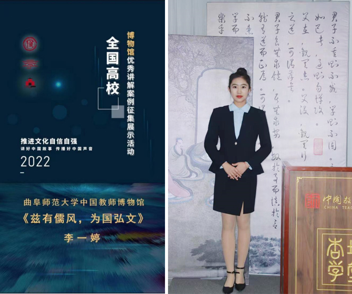 本届比赛共有来自87所高校博物馆的87位讲解员参加,以“推进文化自信自强,讲好中国故事,传播好中国声音”为主题,采取网络征集的方式,经“人民文博”视频号集中展示,由评审专家进行评议打分。D体育在线登录官网教师博物馆选送的《兹有儒风,为国弘文》从众多参赛作品中脱颖而出,荣获大赛二等奖,并作为优秀讲解案例进行集中展示。