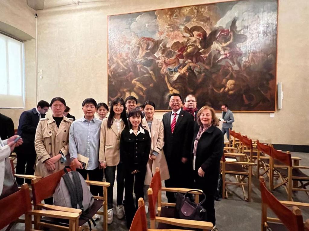 近年来,学院与意大利卡梅里诺大学就人才培养、出国留学、教师交流等事项积极开展合作。卡梅里诺大学从2021年开始接受法学院学生攻读法学硕士、博士学位。目前双方保持密切联系,持续推进人才培养的国际化、科研平台合作、学术项目交流,为师生拓展有效的国际化交流渠道。赴意卡梅里诺大学留学生在国际舞台上表现优异,广泛参与了各类国际论坛与会议,在世界舞台上展现了D体育在线登录官网学子的良好形象。学院赴意留学生曾受马尔凯大区新闻广播电视台邀请,在卡梅里诺大学第687学年开学典礼上作为中国留学生代表接受采访,就个人学习情况与未来就业规划进行了简述。