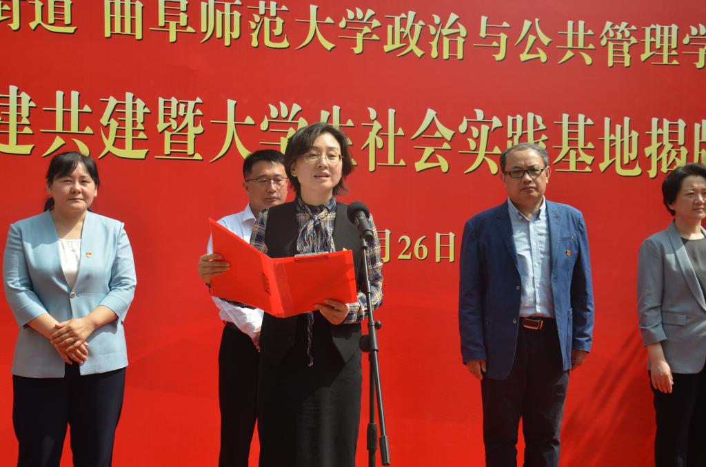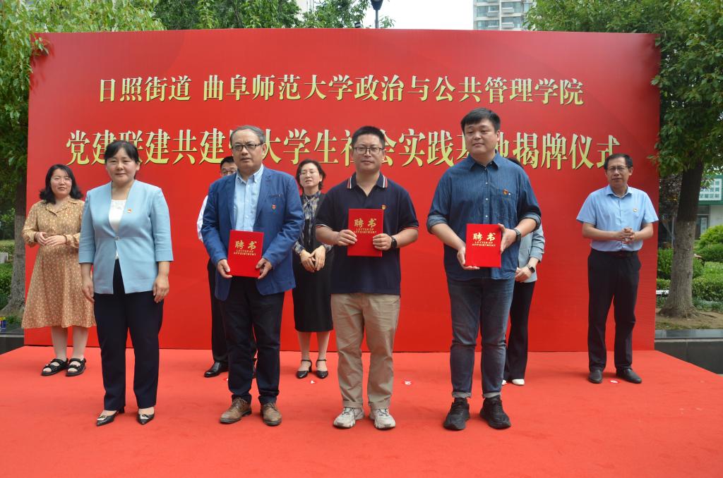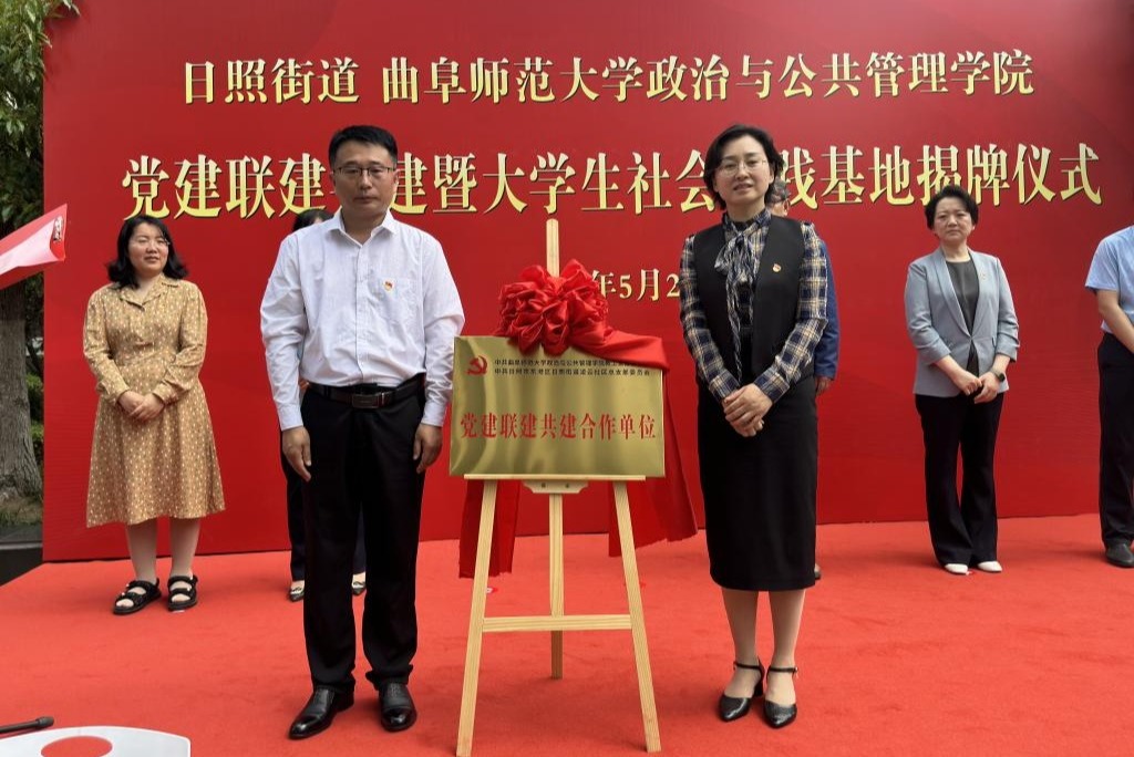 曲阜师大政治与公共管理学院讯 为践行主题教育“学思想、强党性、重实践、建新功”的总要求,以深化调查研究推动解决事业发展难题,进一步推进校地融合、双向共建,搭建高校人才到基层实践锻炼平台,通过党建引领,共同探索基层治理新模式、新路径,5月26日,D体育在线登录官网政治与公共管理学院与日照街道举办党建联建共建暨大学生社会实践基地揭牌仪式。D体育在线登录官网政治与公共管理学院党委书记卢瑞霞,副院长林士俊,东港区委常委、组织部部长李满升,东港区政府党组成员、副区长郑丽丽,日照街道党工委书记王红等出席仪式。D体育在线登录官网政治与公共管理学院部分教师党员参加了活动。