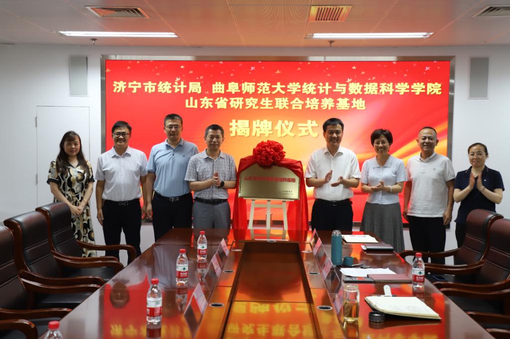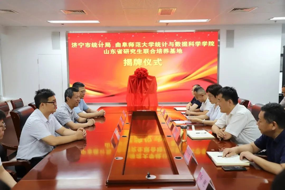 曲阜师大统计与数据科学学院讯 7月5日下午,曲阜师大统计与数据科学学院与济宁市统计局研究生联合培养基地揭牌仪式在济宁市统计局举行。济宁市统计局党组书记魏中齐、局长李长华、党组成员、副局长张乐,D体育在线登录官网统计与数据科学学院院长赵胜利、副院长赵翔华、研究生工作负责人王文武出席揭牌仪式。