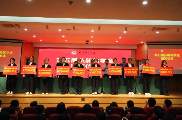仪式上,学院党委副书记孙超公布了教育学院第五届弘毅奖学金获奖名单:刘佳硕、曹彦悦、赖诗瑶、刘奕娴、陈姿含、于筱禾、吕晓臻、宋佳琦、杨柳、付娆。主席台领导老师为获奖学生颁奖,并鼓励大家要珍惜荣誉,再接再厉,争取做更好的榜样。