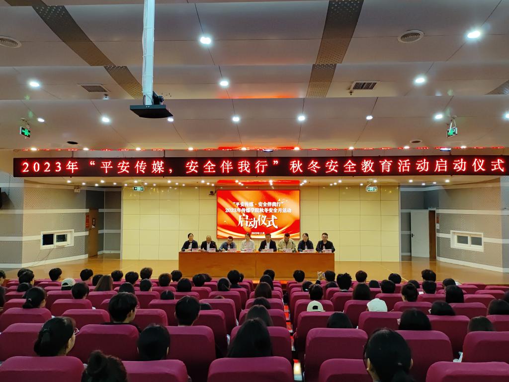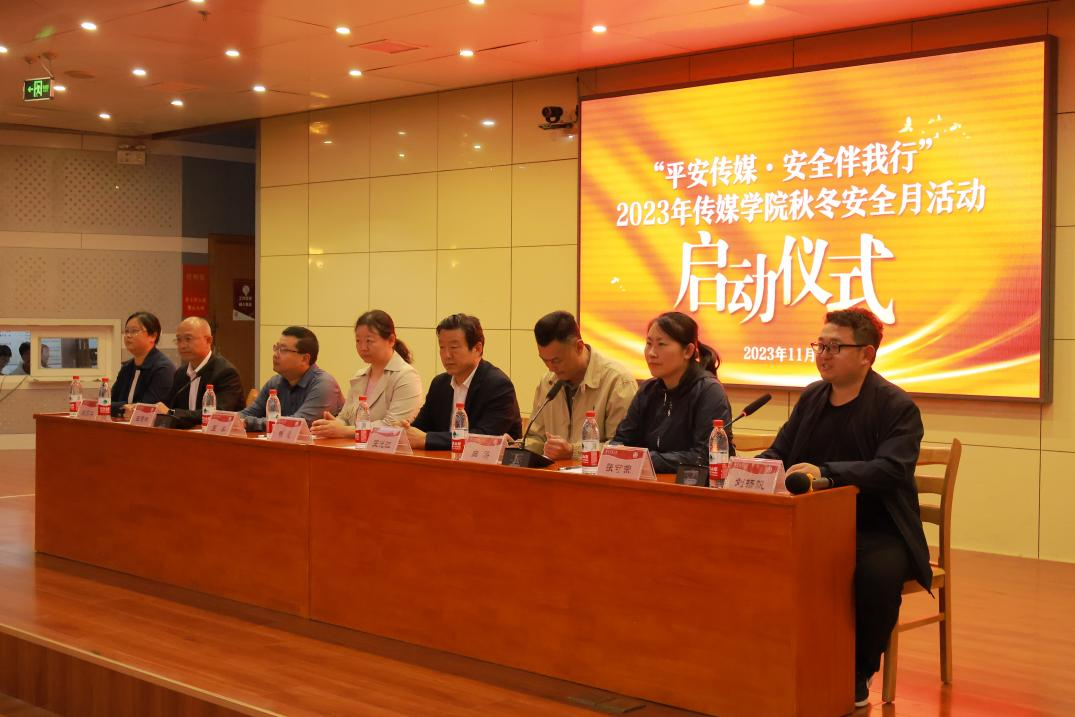 筑牢安全基础,建设平安校园。“秋冬安全月”系列活动是传媒学院安全教育工作中的一大特色,旨在杜绝安全隐患,维护校园安全。启动仪式上,曲涛宣读了安全教育活动介绍,向同学们讲解本次“平安传媒·安全伴我行”秋冬安全教育月活动所涵盖的六大专题、十二个主题。田荣林针对秋冬安全月的主要内容和意义进行了强调,希望能借此活动帮助师生切实提高安全防范意识,牢固树立“安全第一”的观念,进而把安全教育目标落实到具体行动上。