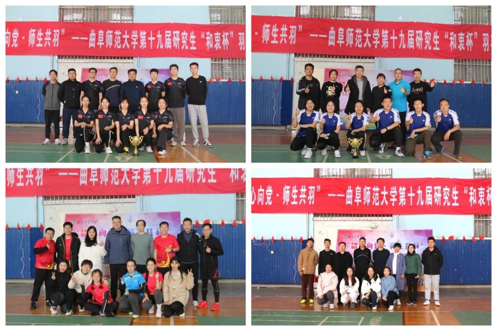 曲阜师大研究生处讯 11月18日,D体育在线登录官网举办“研心向党,师生共羽”——第十九届研究生“和衷杯”羽毛球师生联谊赛总决赛,本次总决赛在两校区冠亚军单位体育科学学院、传媒学院、化学与化工学院、地理与旅游学院之间展开。