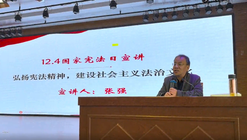 走进司法局联动共学。12月4日,法学院张强副教授为日照市司法局作了题为《弘扬宪法精神 建设社会主义法治文化》的主题宣讲,为在场人员上了一堂生动的法治课。