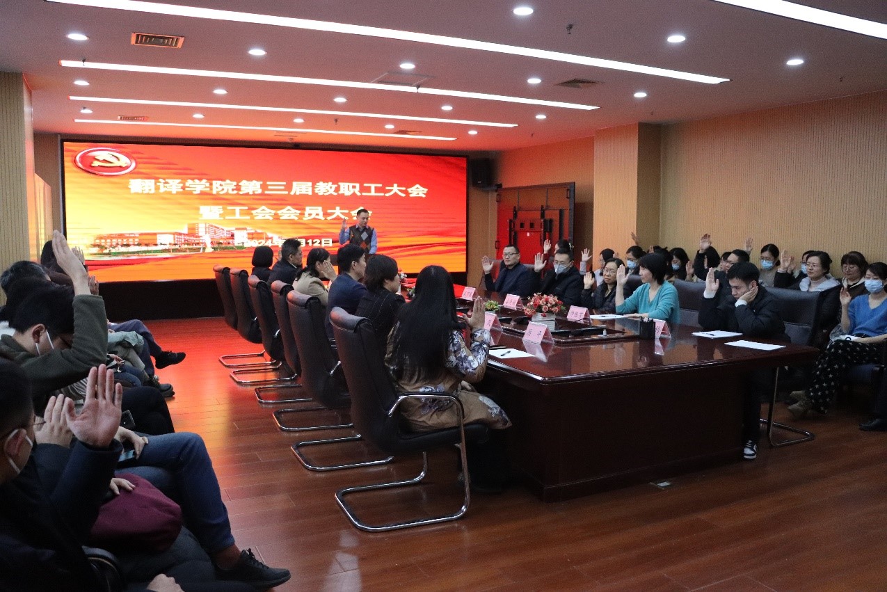 曲阜师大翻译学院讯 1月12日下午,翻译学院第三届教职工大会暨工会会员大会隆重召开,会议由学院党委副书记岳峰主持,全体教职工参会。