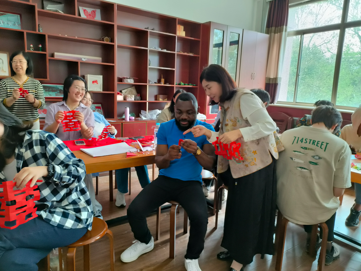 “剪纸传情,共话春风”,常凤英老师的课堂,别开生面,欢声笑语,其乐融融,给中外学生留下了美好的记忆。巧手飞舞,妙手生花。剪纸,不仅仅代表着中国人民对美好生活的向往和追求,更是架构中外文化交流的桥梁。来华留学生是中外文化交流的使者,通过他们可以让更多的国家和人民了解中国,增进中外文明互鉴。
