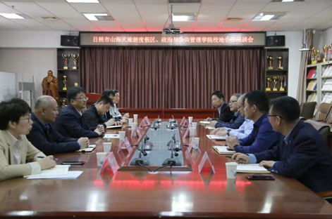 曲阜师大政治与公共管理学院讯 4月19日上午,政治与公共管理学院与日照市山海天旅游度假区开展校地合作座谈会,山海天旅游度假区党群工作部副部长、区直机关党委书记王永波,稳定工作办公室副主任孙强,农业农村局副局长潘广松,社会事业发展局副局长成龙以及文化和旅游局副局长卢言言参加会议,学院领导班子成员出席会议。