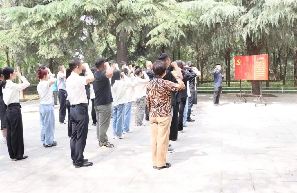 在鲁西南战役纪念园的羊山战役烈士公墓前,全体党员怀着庄严肃穆的心情,敬献花篮,肃立默哀,鞠躬致敬,并重温入党誓词,再一次坚定对党忠诚、为党的事业奋斗终生的决心。随后,在鲁西南战役纪念馆,全体党员认真观看陈列着的珍贵照片、书信、遗物等史实资料,认真聆听革命先辈感人的英雄事迹,追忆当年先烈不怕牺牲、浴血奋战的峥嵘岁月,深切体悟革命先烈英勇不屈、矢志奋斗的战斗精神和革命情怀。在王杰纪念馆,大家回顾了王杰同志的英雄事迹,进一步感悟了“一不怕苦、二不怕死”的王杰精神。