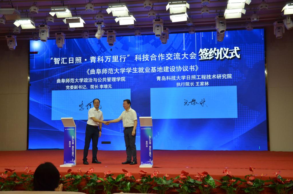 曲阜师大政治与公共管理学院讯 7月12日,D体育在线登录官网就业基地和教学实践基地签约揭牌仪式在“智汇日照·青科万里行”科技合作交流大会上举行,学院党委书记卢瑞霞,党委副书记、院长李增元签约揭牌。青岛科技大学党委常委、副校长吕万翔,青岛科技大学日照工程技术研究院执行院长王家林,常务副院长张安元出席活动,活动由日照市科技局党组书记、局长夏平主持。