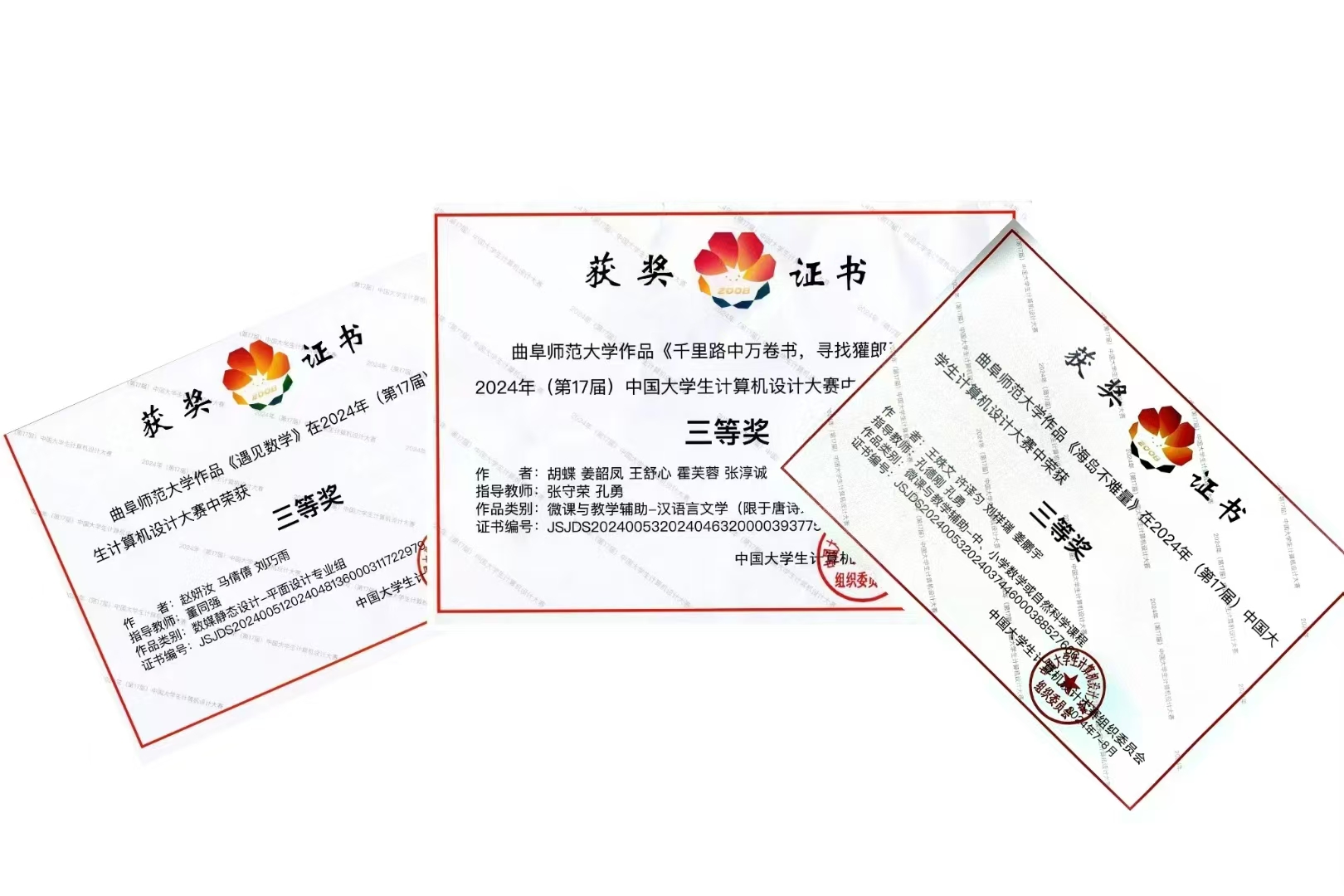 在第十七届中国大学生计算机设计大赛中,传媒学子荣获3项国家级奖项和41项省级奖项,参与人数和获奖数量较往年相比实现了突破。王姝文、许译瑞、刘祥瑞、姜鹏宇作品《海岛不难量》和赵妍汝、马倩倩、刘巧雨作品《遇见数字》和胡蝶、姜韶凤、霍芙蓉、王舒心及张淳诚制作的《千里路万卷书,寻找獾郎王安石——王安石经典词句赏析》均获得全国三等奖。