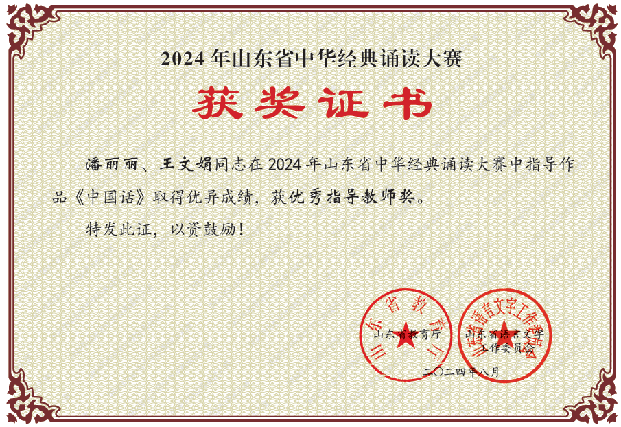 国际教育学院讯  为深入实施中华优秀传统文化传承发展工程,加大国家通用语言文字推广力度,传承发展中华优秀语言文化,日前,山东省教育厅、山东省语言文字工作委员会举办2024 年山东省中华经典诵读大赛。