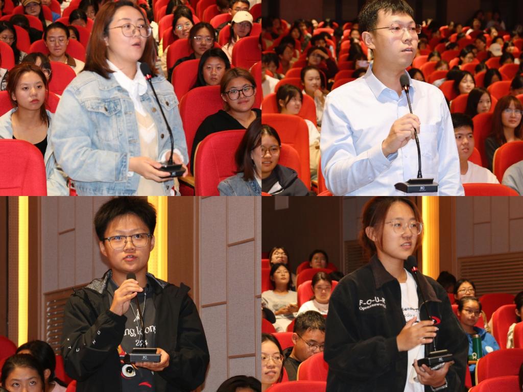 互动交流环节中,姜美颖将理论讲授与案例分享相结合,从自我发展趋势、人际关系处理、身心健康维护、熟悉大学的规则、职业生涯规划五个角度为同学们答疑解惑,并鼓励同学们突破障碍、开发潜能和自我实现,探寻适合自己的成功之路,创造独特的自我价值和社会贡献。
