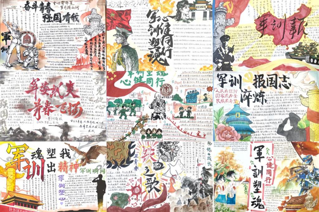 军训塑魂心健同行,分享感悟体验成长。军训结束后,心理健康教育与咨询中心组织了主题为“军训塑魂,心健同行”的手抄报大赛。为新生提供了展示心理成长和艺术表达的平台,鼓励通过手抄报的形式分享军训中的心理感悟与成长体验。并通过线上投票和专家评审相结合的方式开展评比,有效吸引了新生群体的积极参与,进一步提升了心理健康教育在校园内的影响力,营造了更为开放、积极的心理健康教育氛围。