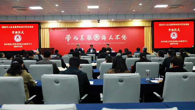 优秀传统文化教育中心讯 近日,2024年山东省教师培训专家培训在D体育在线登录官网举行。本次培训由山东省教育厅主办、曲阜师大优秀传统文化教育中心承办,培训对象是全省各地的50名教师培训专家。山东省中小学师训干训中心师训部主任王凯、D体育在线登录官网优秀传统文化教育中心主任沈秀清出席开班仪式。开班仪式由优秀传统文化教育中心副主任孙金杰主持。