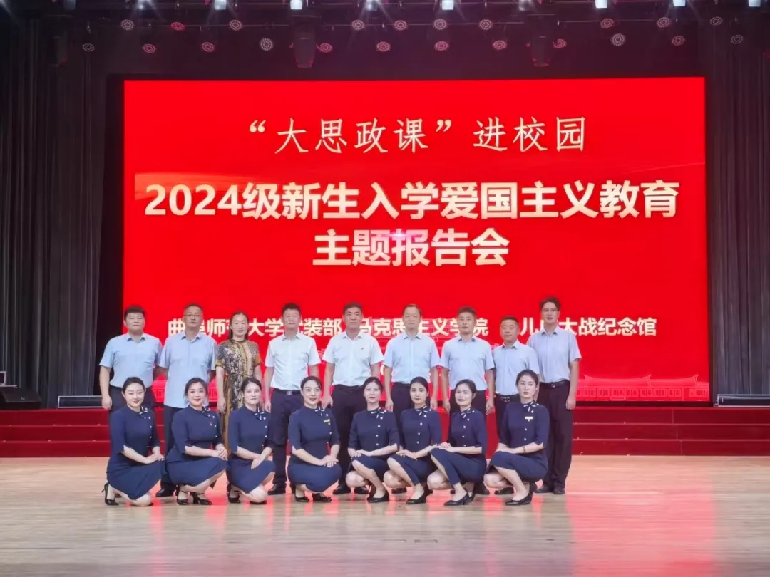 曲阜师大深入贯彻落实习近平总书记关于“大思政课”的重要论述精神,马克思主义学院与全国首批“大思政课”实践教学基地台儿庄大战纪念馆签订馆校结对共建协议,以“大思政课”实践教学基地建设为抓手,以学生全面发展和成长成才为目标,充分发挥思政课主渠道作用,依托纪念馆的革命文物、教学案例、数据库等教学资源,创建沉浸式一体化教育新模式,初步探索形成了“资源共享、人才互聘、展教结合、思政突出”的馆校融合共建机制,矢志培育具有扎实学识、实践能力、身心健康、堪当民族复兴重任的时代新人。