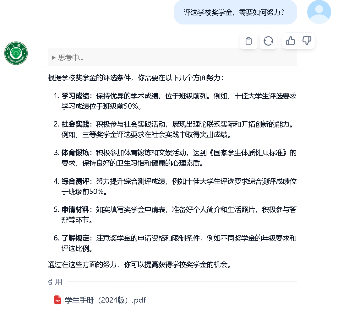 作为智慧校园建设的核心载体,“杏铎AI”平台分阶段推进教育资源的深度整合与智能化升级。2023年,学校联合钉钉打造“云上曲园”平台;2024年,校级AI知识库落地,完成教育管理资源的有效整合与共享;2025年,“杏铎AI”建立,依托“本地+云端”混合计算架构,平台将实现数据自主可控与算力弹性扩展,全面支撑招生、就业、安防等复杂场景的智能决策。“治学”这一系统性工程不仅提升了校园治理效能,更为教育管理模式的现代化转型提供了范本。