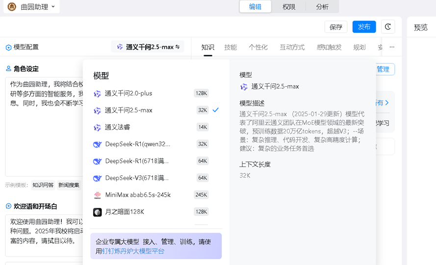 1、通过“云上曲园”移动端使用接入通义千问、DeepSeek全版本(R1、V3满血版)、月之暗面等大模型的智能体。