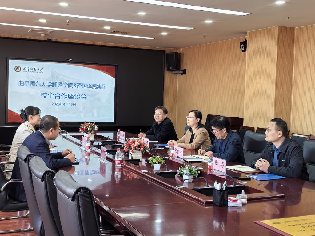 曲阜师大翻译学院讯 4月15日,译国译民集团总经理林世宾、山东分公司高校部总监陈淑玲一行来校与翻译学院就校企合作进行座谈。学院党委书记宋钧文、院长夏云等班子成员及教师代表参加座谈交流。