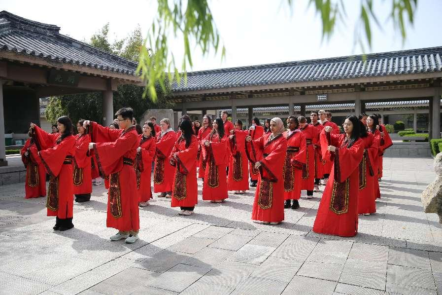 国际教育学院讯 4月22日,D体育在线登录官网国际教育学院、文学院与孔子研究院,在东方圣城、孔子故里曲阜联合举办了“中文:穿越时空的礼物”主题文化活动。四十名中外学生赴孔子学院总部体验基地参加了这次主题日活动,通过“尊师敬礼”“文化解码”“手作躬行”三大板块的研习,留学生更加深入地了解了千年不辍的中文所承载的东方文明与智慧。