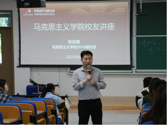 曲阜师大马克思主义学院讯 4月26日,马克思主义学院举办“木铎金声 弦歌论道”70周年校庆专场报告暨校友经验分享会。特邀请中共齐河县委党校教师、党史党建教研组组长、2015级校友李文涛,山东水利职业学院教师、2016级校友张志强作专题报告,2023级、2024级本科生和教师代表参加活动。
