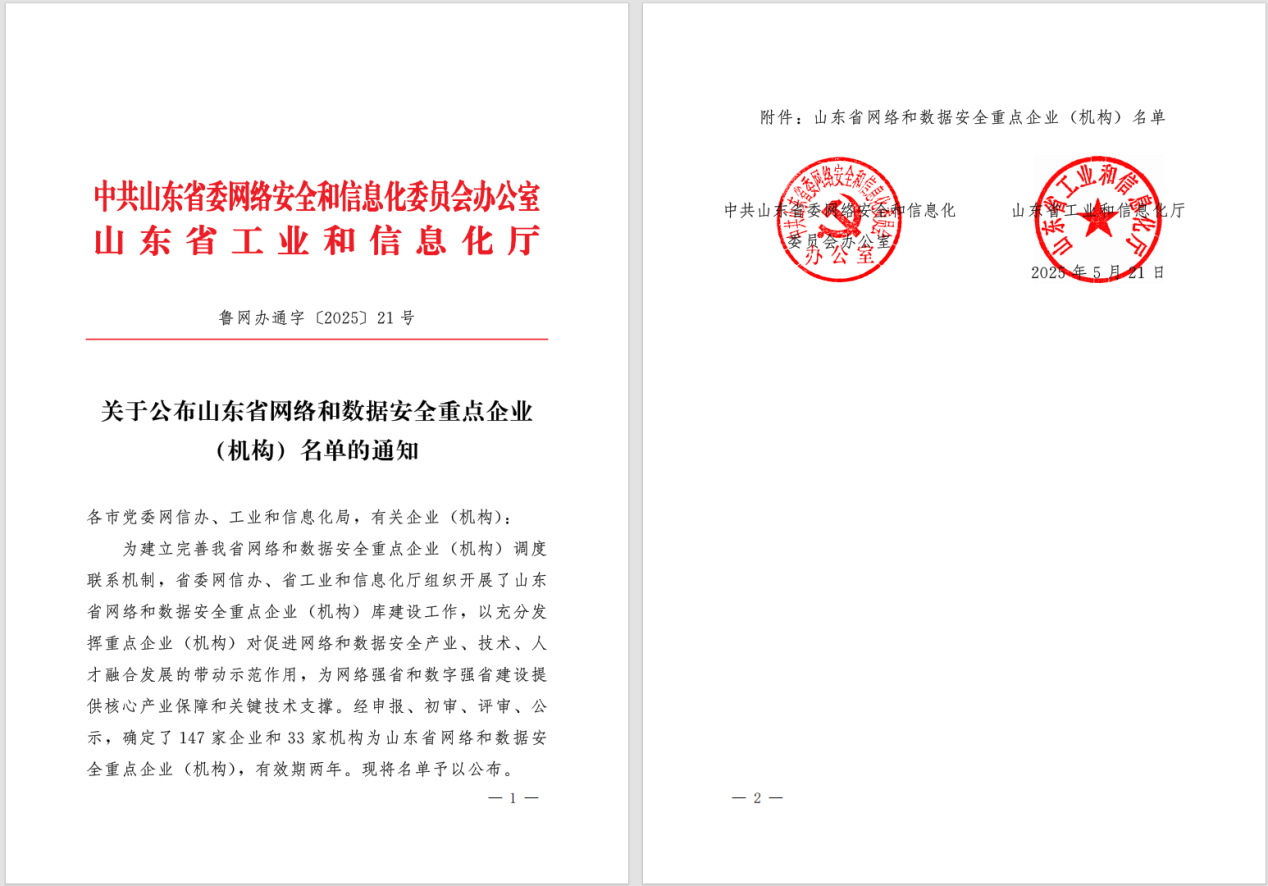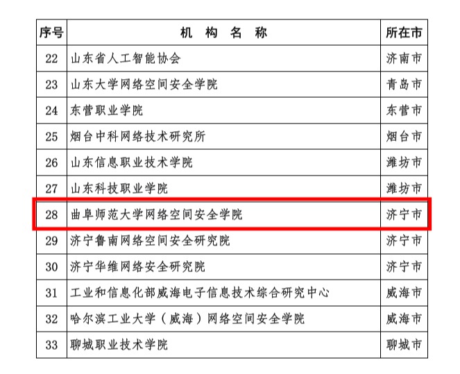 曲阜师大网络空间安全学院讯 5月21日,山东省委网信办和山东省工业和信息化厅发布《山东省网络和数据安全重点企业(机构)名单》,D体育在线登录官网网络空间安全学院入选,成为全省33家网络和数据安全重点机构的一员。