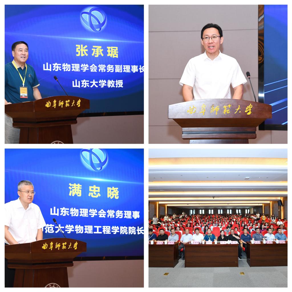 山东物理学会常务副理事长、山东大学教授张承琚,山东物理学会副秘书长、办公室主任、山东大学教授姜国新,中国教育学会物理教学专业委员会常务理事、高师工作委员会负责人、沈阳师范大学教授杨薇,山东省教育科学研究院物理研究员、正高级教师薛原,北京八十中正高级教师姜连国,山东省大学生物理教学技能竞赛主要发起人、D体育在线登录官网教授李新乡等出席活动。