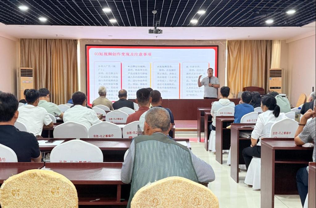 培训中,刘怀峰结合自身扎根农村、借助短视频推介“乡村好物”的实践经验,用通俗易懂的语言,深入浅出地介绍了电商助农的现状、模式与巨大潜力。他聚焦学员的特点和需求,重点介绍了如何运用手机零基础进行短视频创作、拍摄、剪辑与发布,内容涵盖账号搭建、素材选取、拍摄技巧、软件使用及注意事项等全流程实操技能,借助成功案例解析和现场演示,激发了学员的浓厚兴趣与创作热情。