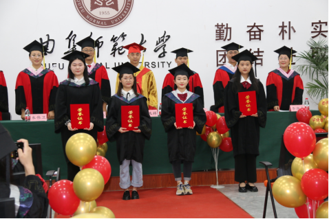 副院长李海青宣读了毕业生学位授予决定。其中,本科生101名、硕士研究生42名,超过五分之一的同学,继续求学深造,三分之一的同学立志投身教育事业,不少同学即将进入各自的专业领域工作,还有同学选择服务基层、支援西部,到祖国最需要的地方去,用实际行动诠释新时代青年的使命与担当。