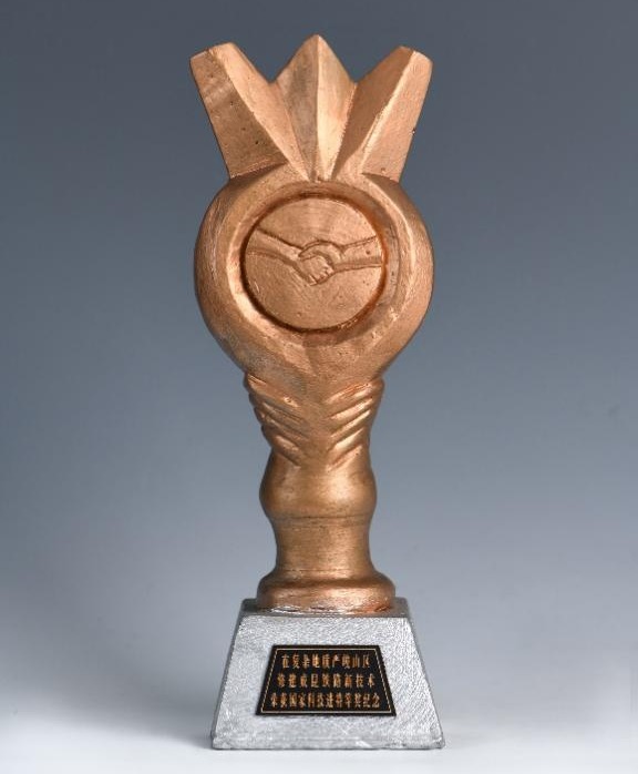 初学导:成昆铁路修建项目“在复杂地质险峻山区修建成昆铁路新技术”,荣获1985年国家科技进步特等奖。国家科委授予我校奖杯一枚。奖杯上面两人握手,象征着铁路贯通铁道兵和铁道部两支筑路大军胜利会师,这是党和国家对我们的鼓励。