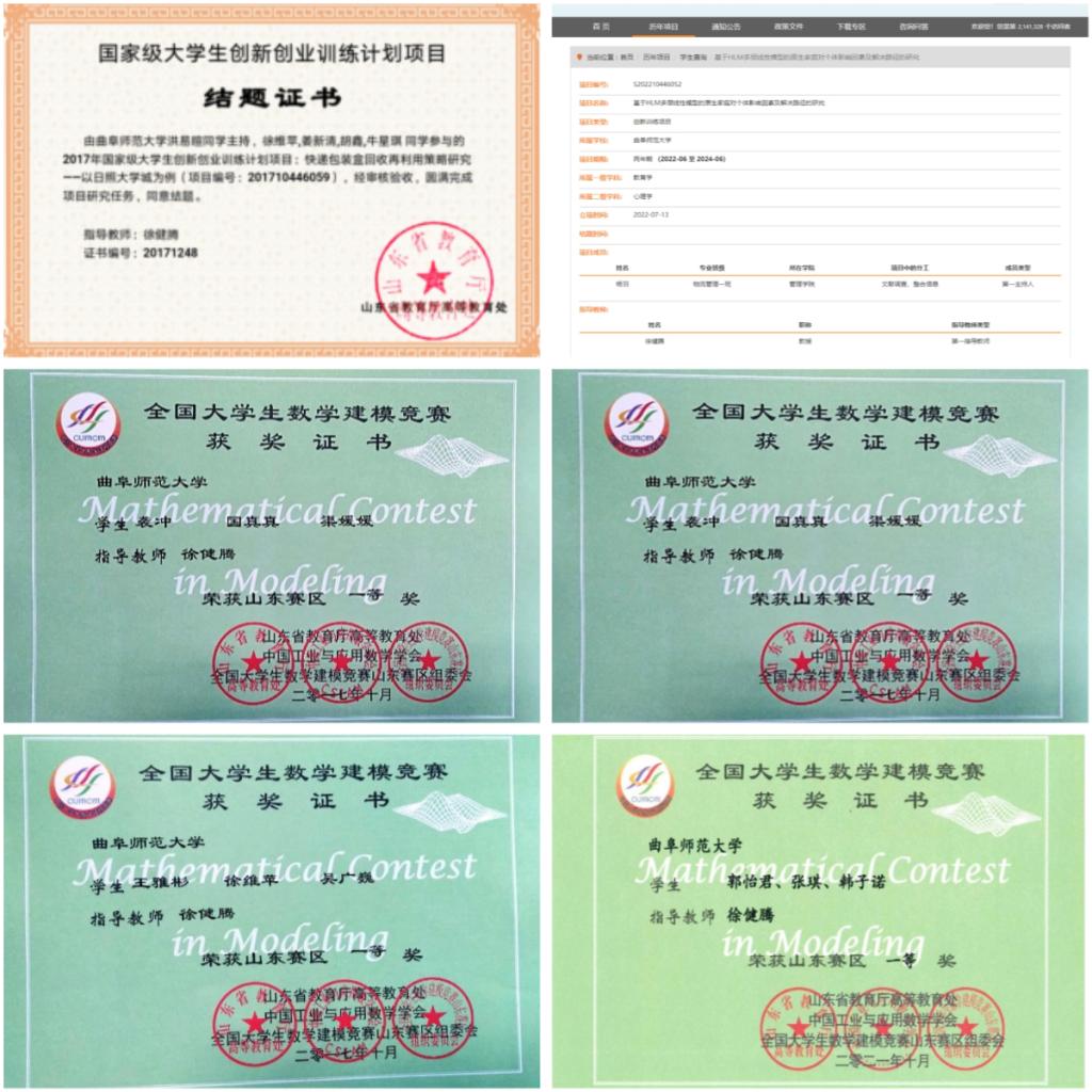 在本科生的培养过程中,我通过开设专题研讨课程、指导课程论文和各种专业竞赛等方式,将对科研感兴趣的本科生进行引导,一起提炼科学问题、概念模型、问卷设计、研究方法等。学生们多次获得创新创业大赛、建模竞赛等国家级、省级奖励。
