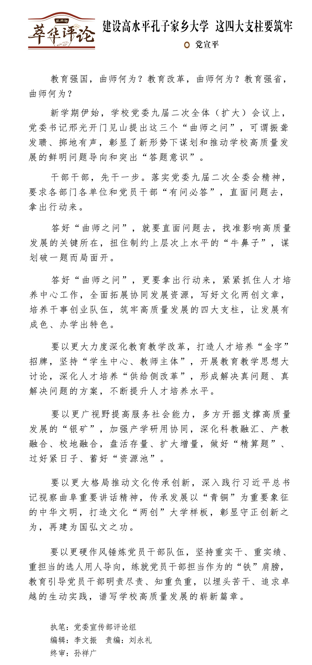 文:党委宣传部评论组