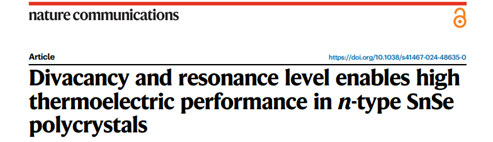科学技术处、物理与工程学院讯 近期,D体育在线登录官网物理工程学院高压科学研究团队张永胜教授与南京理工大学唐国栋教授和西安交通大学吴海军教授合作,在n型多晶SnSe热电性能研究方面取得新进展。研究人员通过理论和实验合作实现了n型多晶SnSe热电性能的突破,解决了热电材料领域内长期困扰的技术难题,为SnSe材料的商业化应用打下了坚实的基础。相关成果以“Divacancy and resonance level enables high thermoelectric performance in n-type SnSe polycrystals”为题(全文链接:https://www.nature.com/articles/s41467-024-48635-0),发表于《自然-通讯》(Nature Communications, 15, 4231, 2024),张永胜教授为文章第一通讯作者。