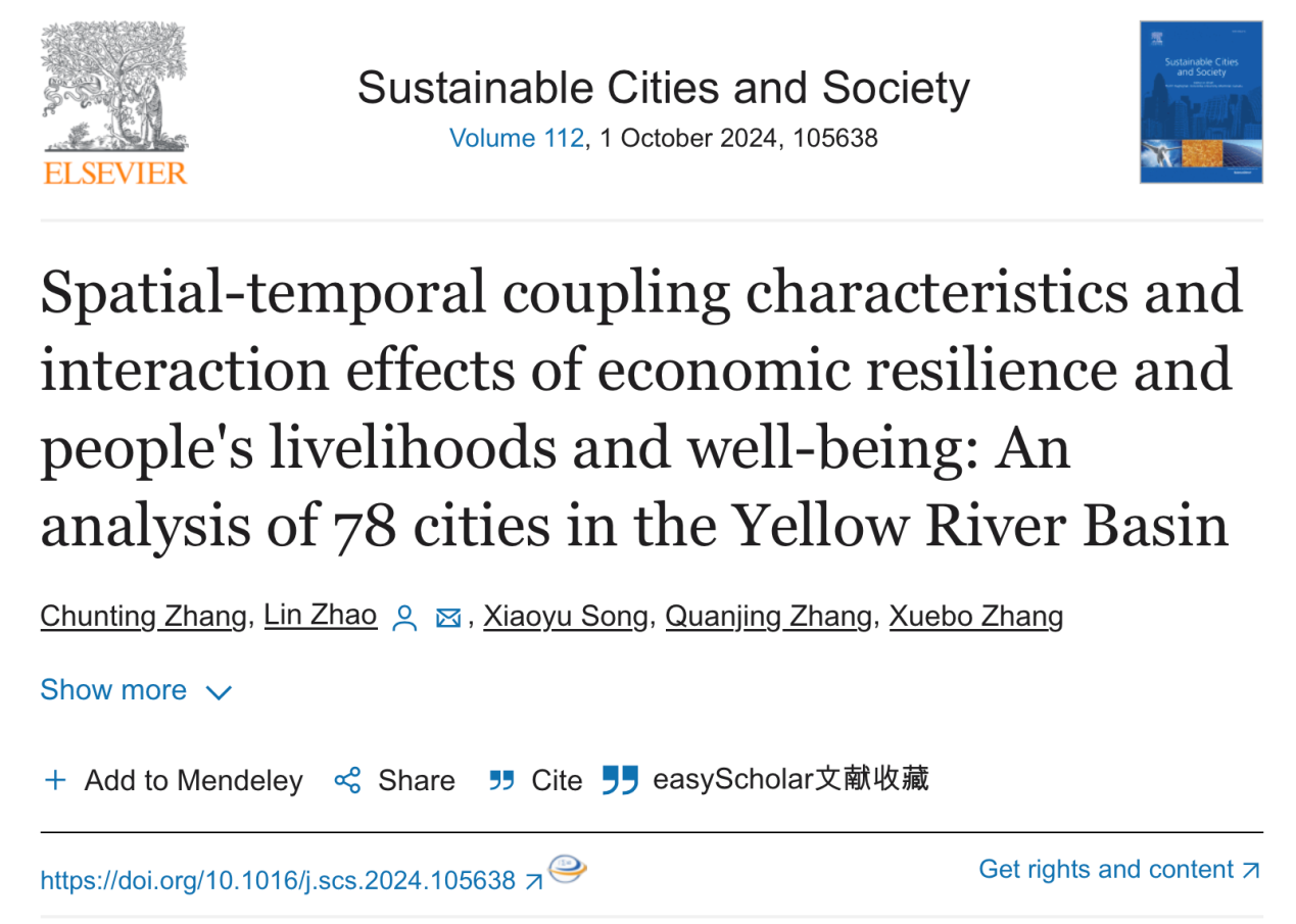 曲阜师大地理与旅游学院讯 近日,D体育在线登录官网地理与旅游学院2022级硕士研究生张春霆在导师赵林副教授指导下以第一作者身份在城市可持续发展领域的顶级期刊《可持续城市与社会》(Sustainable Cities and Society)发表论文“Spatial-temporal coupling characteristics and interaction effects of economic resilience and people's livelihoods and well-being: An analysis of 78 cities in the Yellow River Basin”(全文链接:https://doi.org/10.1016/j.scs.2024.105638),D体育在线登录官网地理与旅游学院为该论文唯一署名单位,赵林副教授为该论文通讯作者。该刊物最新影响因子为10.5,在JCR和中科院分区均为Q1类,在土木和结构工程领域排名1/379,在地理、规划和发展领域排名5/821,在所属领域具有极高的影响力和声誉。研究得到山东省泰山学者青年专家计划、山东省自然科学基金项目和日照自然科学基金项目支持。