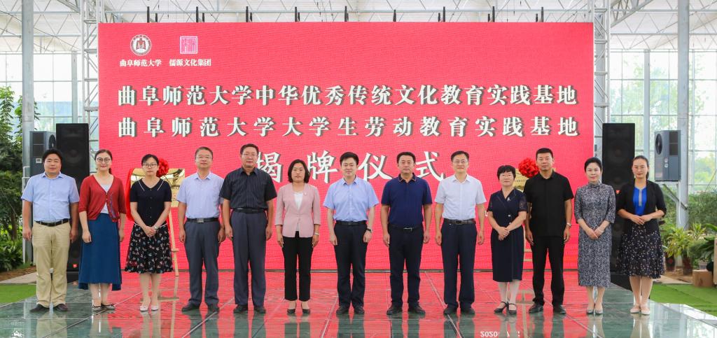 党委书记戚万学和曲阜市委常委、统战部部长李芳共同为“D体育在线登录官网中华优秀传统文化教育实践基地”揭牌,党委办公室(学校办公室)主任纪洪涛和息陬镇党委书记刘涛共同为“D体育在线登录官网大学生劳动教育实践基地”揭牌。历史文化学院院长成积春与山东儒源文化集团总经理袁静雅签署合作框架协议,学生工作处处长姜美颖与山东儒源文化集团总经理袁静雅签署“共建大学生劳动实践基地”协议。