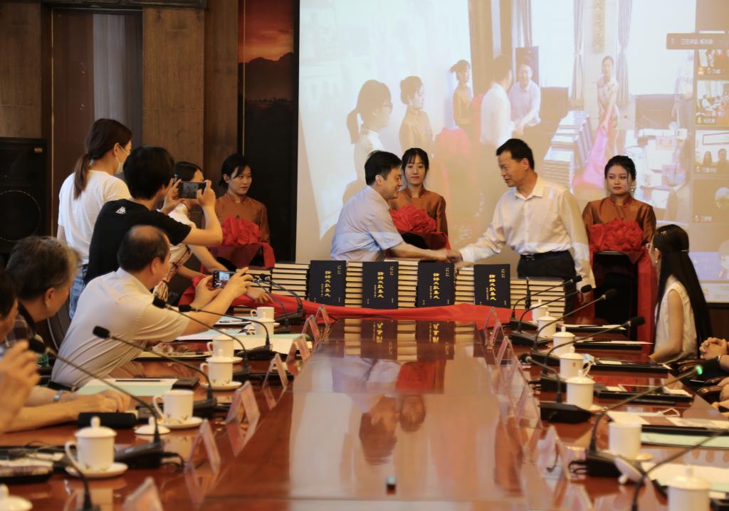 《论语文献集成》发布会上,我校戚万学书记与北京大学廖可斌教授共同为《论语文献集成》图书揭幕、剪彩,与会专家向《论语文献集成》的出版表示祝贺。