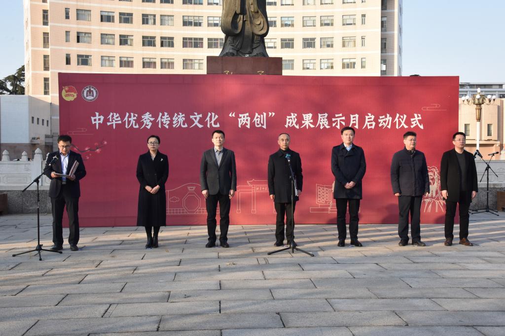 李兆祥在启动仪式上发表讲话。他指出,党的十八大以来,以习近平同志为核心的党中央高度重视中华优秀传统文化的传承发展,在习近平总书记视察曲阜发表重要讲话八周年之际,曲阜师大举办本次中华优秀传统文化“两创”成果展示月活动的意义重大而深远。作为设学孔子故里、中华文明的重要发祥地和儒家文化发源地的大学,全校师生应认真践行习近平总书记视察曲阜重要讲话精神,不忘“为国弘文”的文化使命,发掘孔子故里的独特文化资源,积极推动中华优秀传统文化“创造性转化、创新性发展”,完成“以古人之规矩,开自己之生面”的时代任务,培育新时代具有“君子人格”的马克思主义者。