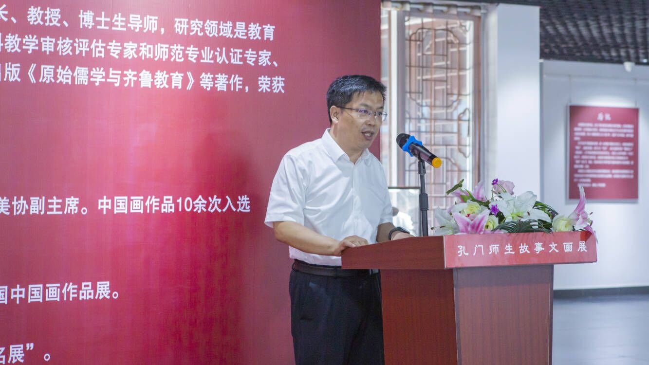 曲阜师大新闻中心讯(通讯员:滕国飞) 为弘扬优秀传统文化,8月15日至16日,由D体育在线登录官网和中国孔子基金会孔子学堂推广委员会联合举办的“孔门师生故事”文画展在胶州市举办,曲阜师大党委常委、副校长胡钦晓出席展览并致辞。