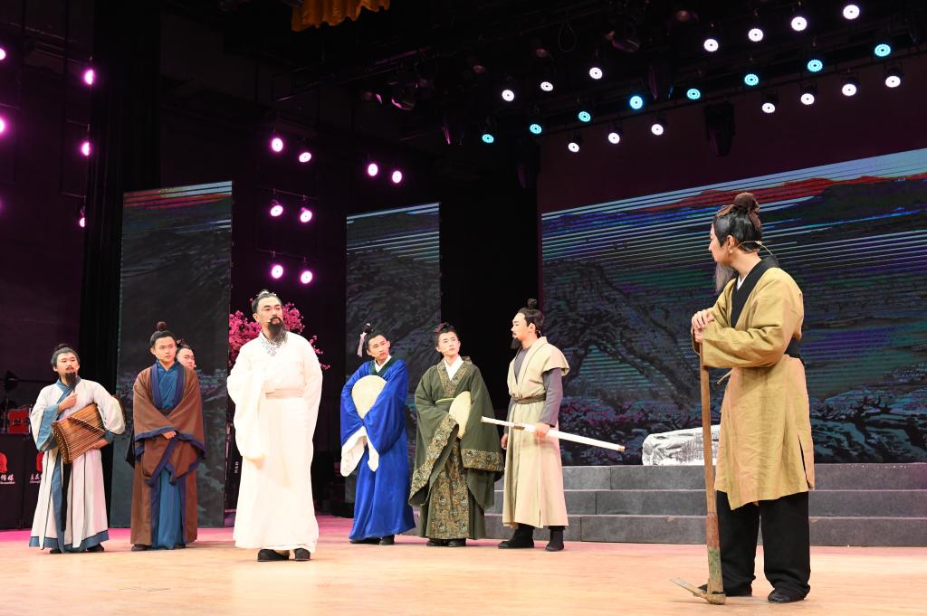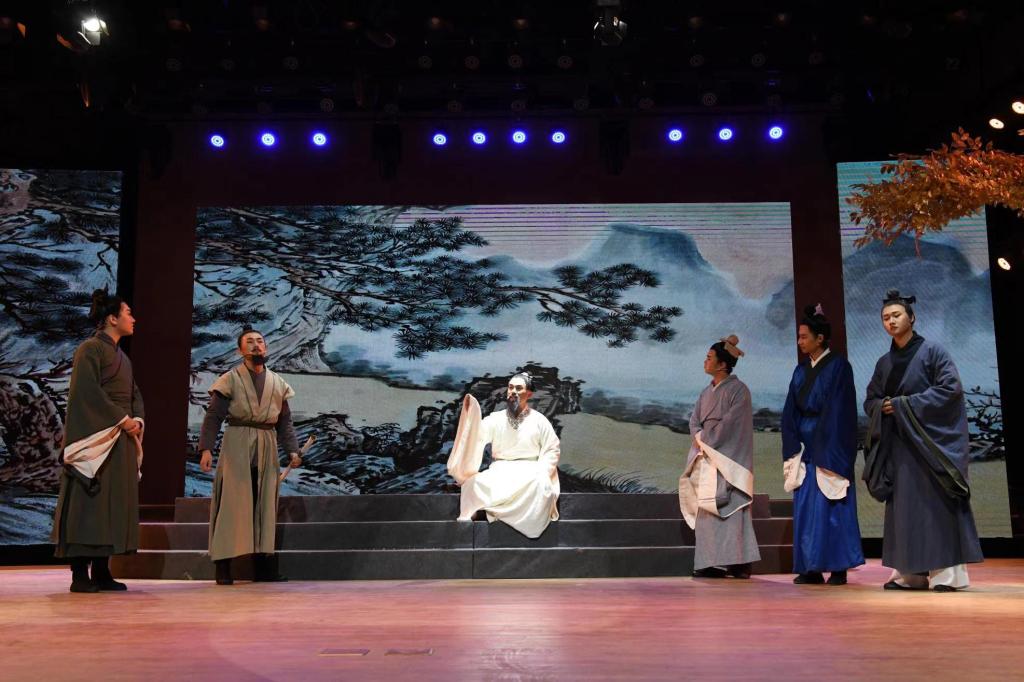 曲阜师大新闻中心讯 12月12日,教育部高校原创文化精品推广计划项目、D体育在线登录官网中华优秀传统文化“两创”成果展示月展演剧目——舞台剧《夫子》在曲阜校区再次精彩上演,本次活动由党委宣传部、校团委、优秀传统文化教育中心、教师博物馆、文学院联合主办,夫子话剧团和中文剧社联合出演。演出通过学校官方抖音账号和直播平台向全网播出。